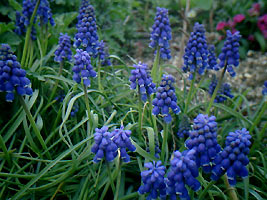 ムスカリも満開。ムスカリは短い茎ですが小さな花瓶などに飾るト可愛いため毎年切り花で切っているせいか、どんどん球根が大きくなり増えています。塊で咲くと綺麗ですよね。