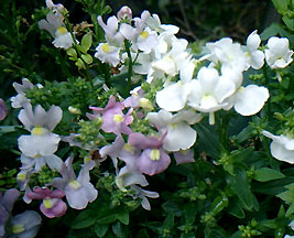 ネメシア。ちょうど満開の時期。しばらくしたら花柄ごと1/3程度切り詰めると全体的にふんわり形がよくなります。切った枝は挿し木が可能。赤玉に挿して日陰で管理します。