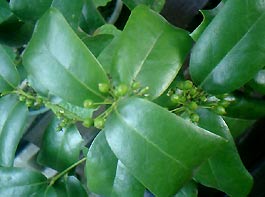 クリスマスホーリーの花が落ちて実になってきました。こちらは冬頃には赤く色付きクリスマスを彩ってくれます。ヒイラギ系はチャドクガなどつきやすいのでスミチオンを散布するなど注意します。乾燥すると実が落ちるので極度の乾燥にも気をつけます。